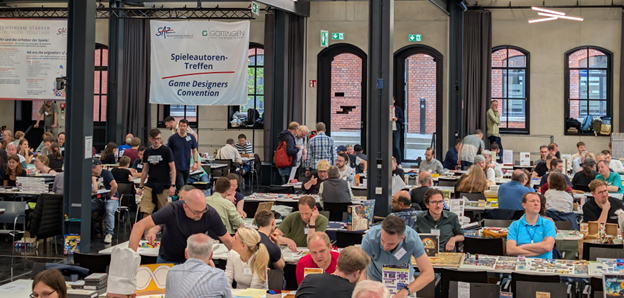 Am 31. Mai und 01. Juni 2025 fand das 43. Spieleautor*innen-Treffen in Göttingen statt. Mehr als 350 Menschen kamen in die Sheddachhalle, an 160 Tischen wurden Prototypen präsentiert und von über 80 Verlagsvertretern von knapp 40 Verlagen begutachtet.
